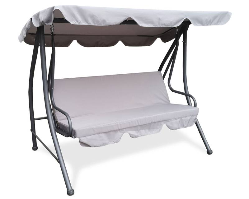 Karakteristike – Tip: Baštenska ljuljaška Dimenzije: 200cm x 164cm x 120cm Materijal: Metalni okvir,Poliester Boja: Siva Stanje: Nekorišćeno Ostale karakteristike – Ostalo: 160cm x 45cm x 50cm (sedište),Čelična konstrukcija sa praškastim premazom,Nasloni za ruke,Poliester – 180g/m2,Široka nagibna nadstrešnica sa ukrasnim ivicama pruža odličnu zaštitu od sunčevih zraka, ali i od letnje kiše Reklamacioni period – Reklamacioni period: 24 meseca