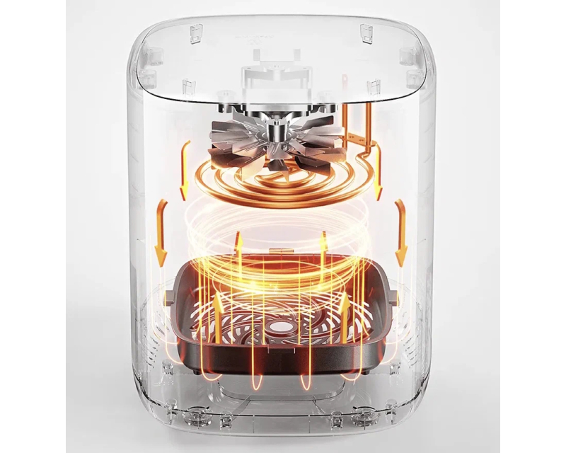 Karakteristike – Tip: Friteza na vruć vazduh Snaga: 1.700W Temperatura: od 40°C do 210°C Broj nožića: 4 Fizičke karakteristike – Boja: Bela Dimenzije: 410mm x 380mm x 330mm Težina: 5.4kg Kapacitet: 6.5l Ostalo – Dodatne funkcije: 7 programa Napomena: Automatsko isključivanje prilikom otvaranja poklopca,Flip-free (360° konvekciono grejanje sa dvostrukim spiralnim ventilatorom) Čišćenje: Nastavci perivi u mašini za pranje sudova Ostalo: 101 recept online preko QR koda Reklamacioni period – Reklamacioni period: 24 meseca